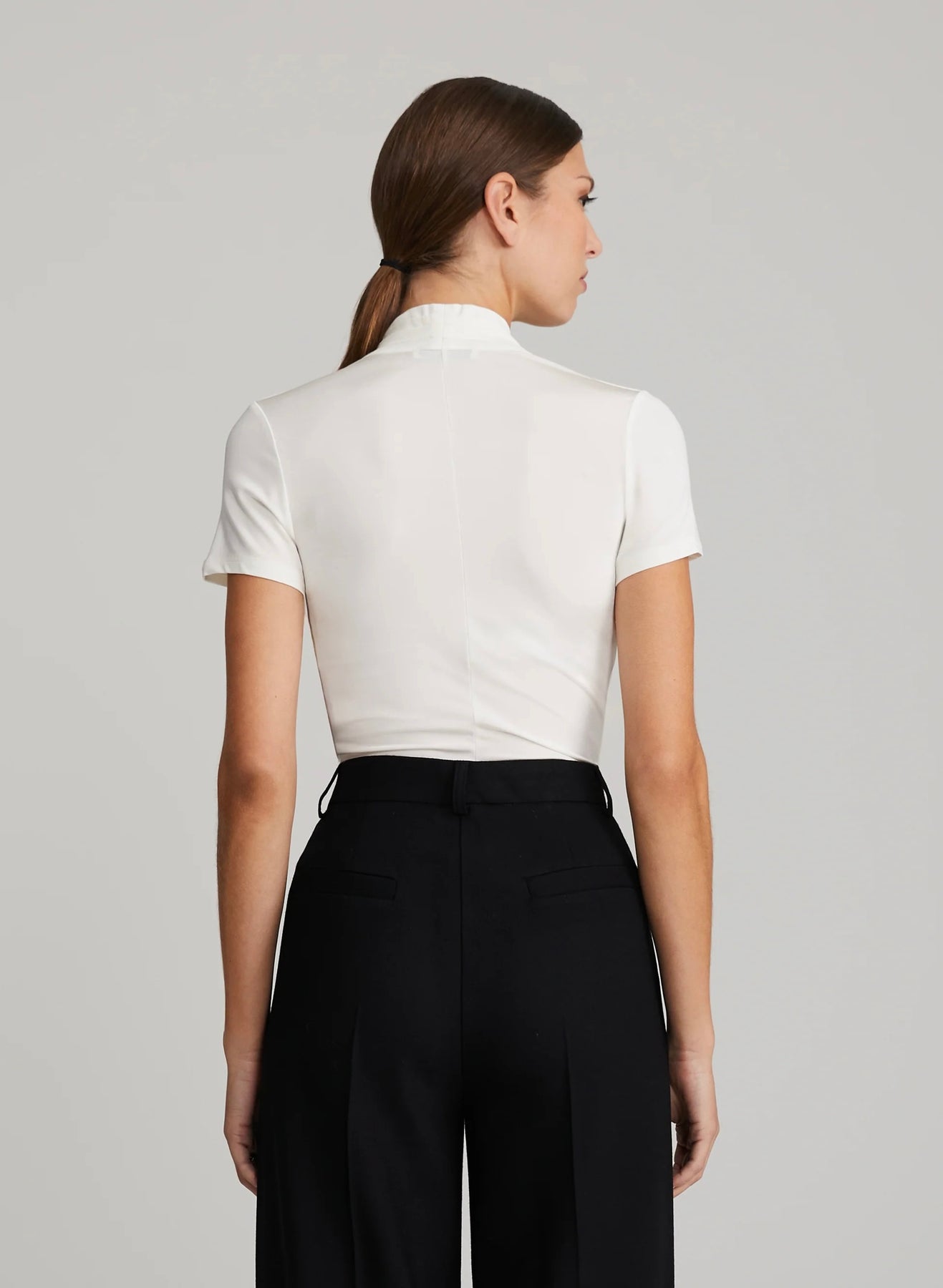 Kietaisutyylinen toppi joustavasta viskoosisekoitteesta. Lyhyet hihat, V-pääntie, imarteleva istuvuus, jossa kietaisuleikkaus edessä.