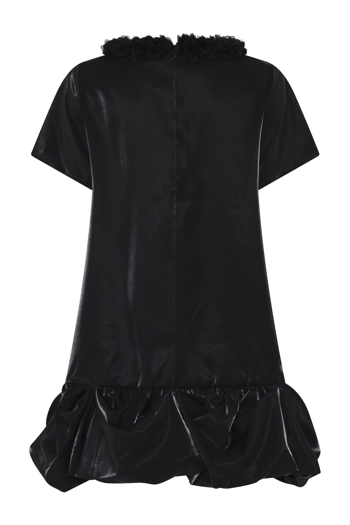 Mekon pääntiessä on yksityiskohtana tyllistä ommeltu kukkakuvioinen 3D efekti. A-linjaisessa mekossa runasas on kaunis helma.