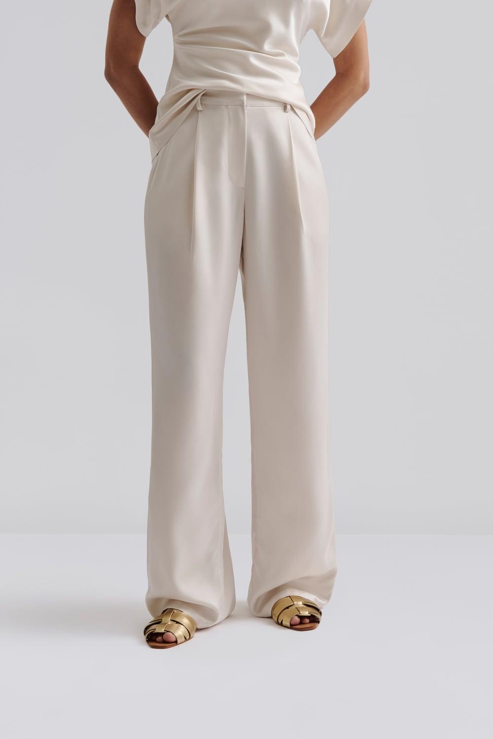 Malina Sarah viimeistelty räätälöity satiinihousu. Sarahissa on taskut edessä ja takana, vyötärönauha on elastinen, hyvin mukava käyttää.