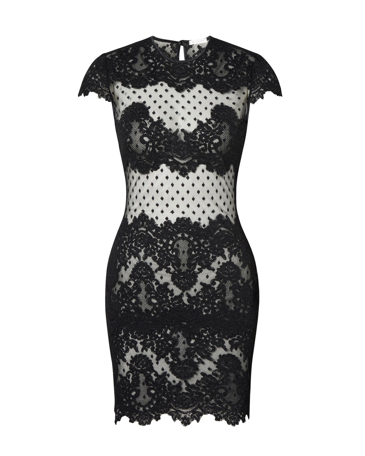 Mekko on valmistettu läpikuultavasta pilkullisesta tyllistä, johon on kerrostettu Idan tavaramerkiksi muodostunutta guipure-pitsiä, joka on huolellisesti asetettu naisen vartaloa ajatellen. Mekossa on imartelevat lyhyet hihat ja takana helminappi ja halkio pukeutumista helpottamaan. Sivussa myös piilovetoketju.