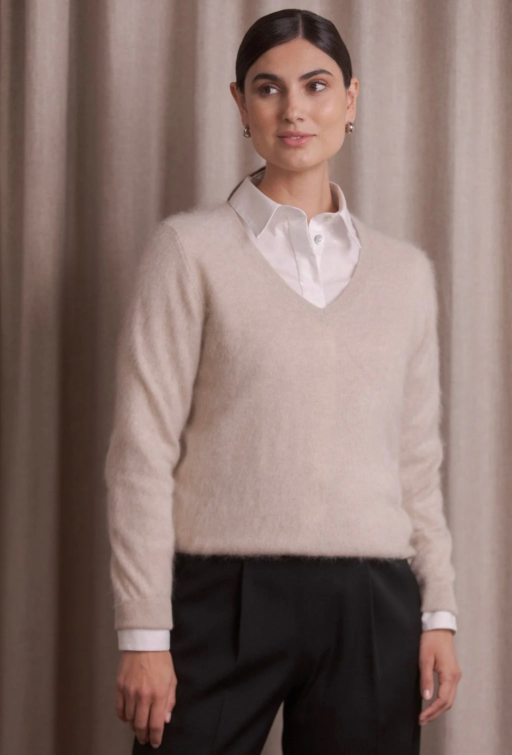 Original Story pitkähihainen Kashmirneule V-kaula-aukolla latte