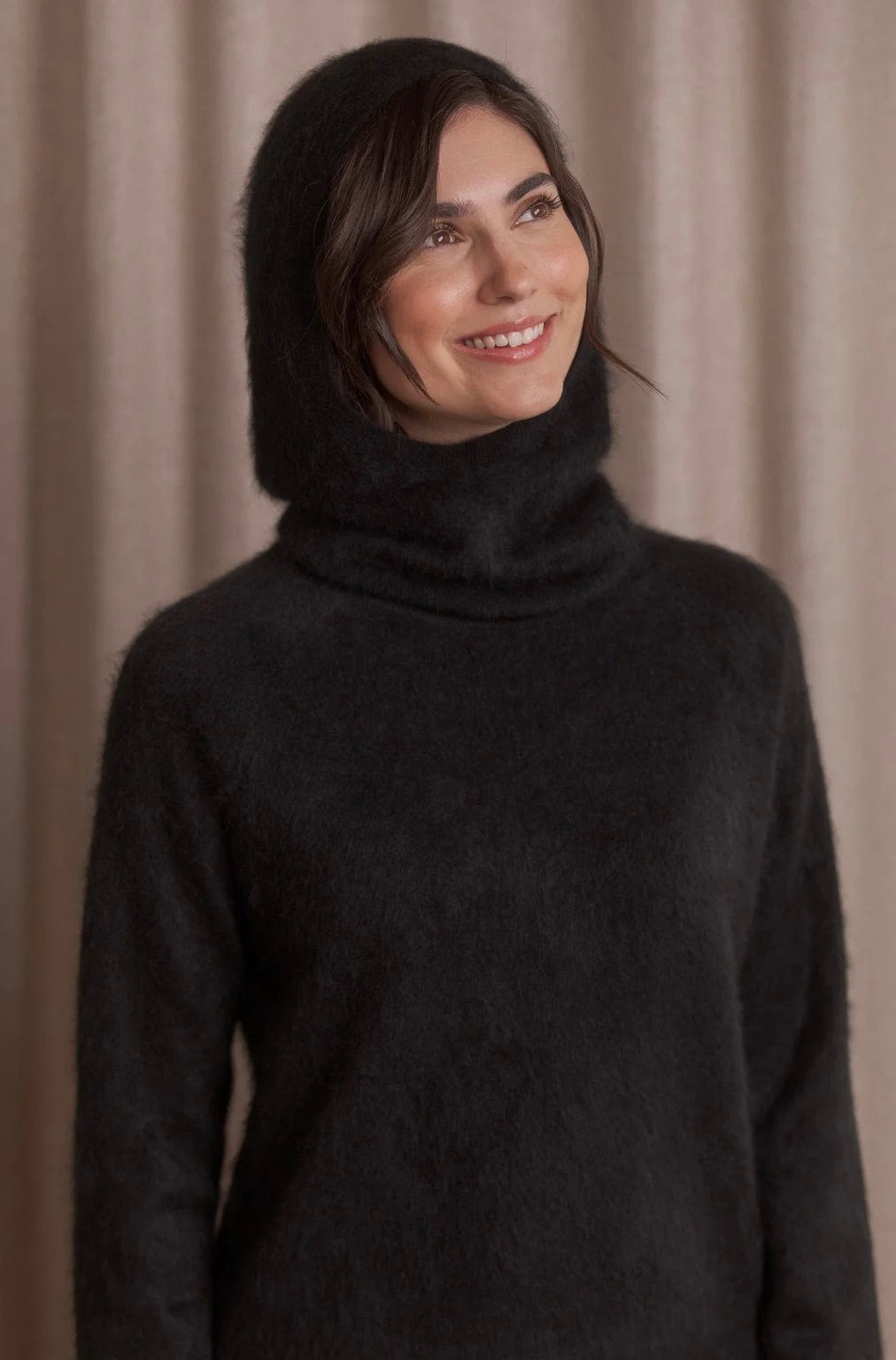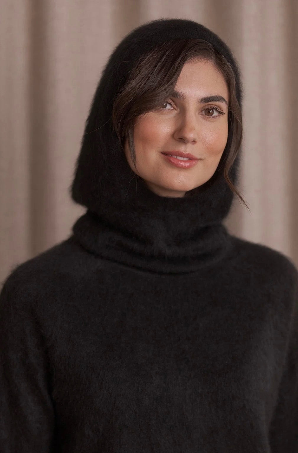 Kashmirista valmistettu huppu tuo pehmeyttä viileisiin säihin. Monikäyttöinen asuste suojaa ihanteellisesti kylmältä säilyttäen elegantin ilmeen.